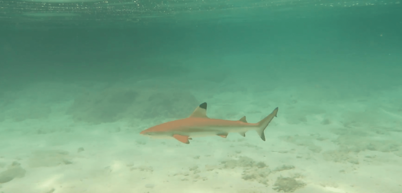 The blacktip reef shark averages 1.6 meters in length but may grow up to 1.8 to 2 meters. Like most sharks, it doesn’t have cone cells in its retinas, thus limiting its ability to distinguish colors and fine details. Instead, its vision is adapted to sensing movement or contrast under low light conditions.The blacktip reef shark gets more excited when in the company of other blacktips, sometimes even getting into a feeding frenzy! It is generally timid, skittish, and non-aggressive towards humans unless provoked by food (so don’t feed the fish!).