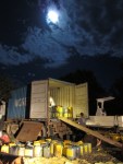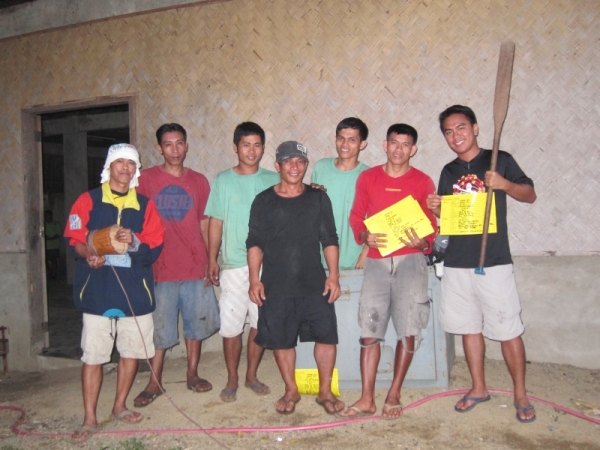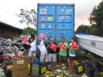 Two types of containers were used in the hauling. The 20-liter plastic jugs contained the used cooking oil, while the 200-liter steel drums had the used engine oil. Each container was tagged as “hazardous waste” and labeled with the contents, characteristics of the waste, amount, packaging and shipping dates, and the company involved. The team spent all night loading 990 plastic containers and 60 steel drums onto the two trucks, with people stealing catnaps every two hours or so (except for Resort Engineer Mervin Velasco, who was the boss of the whole thing). Kring and I took turns documenting the event. Never underestimate the restorative powers of coffee and crackers. We finally finished loading the second truck at 6 am, just in time to see the sun rise and the fruits of our labor.