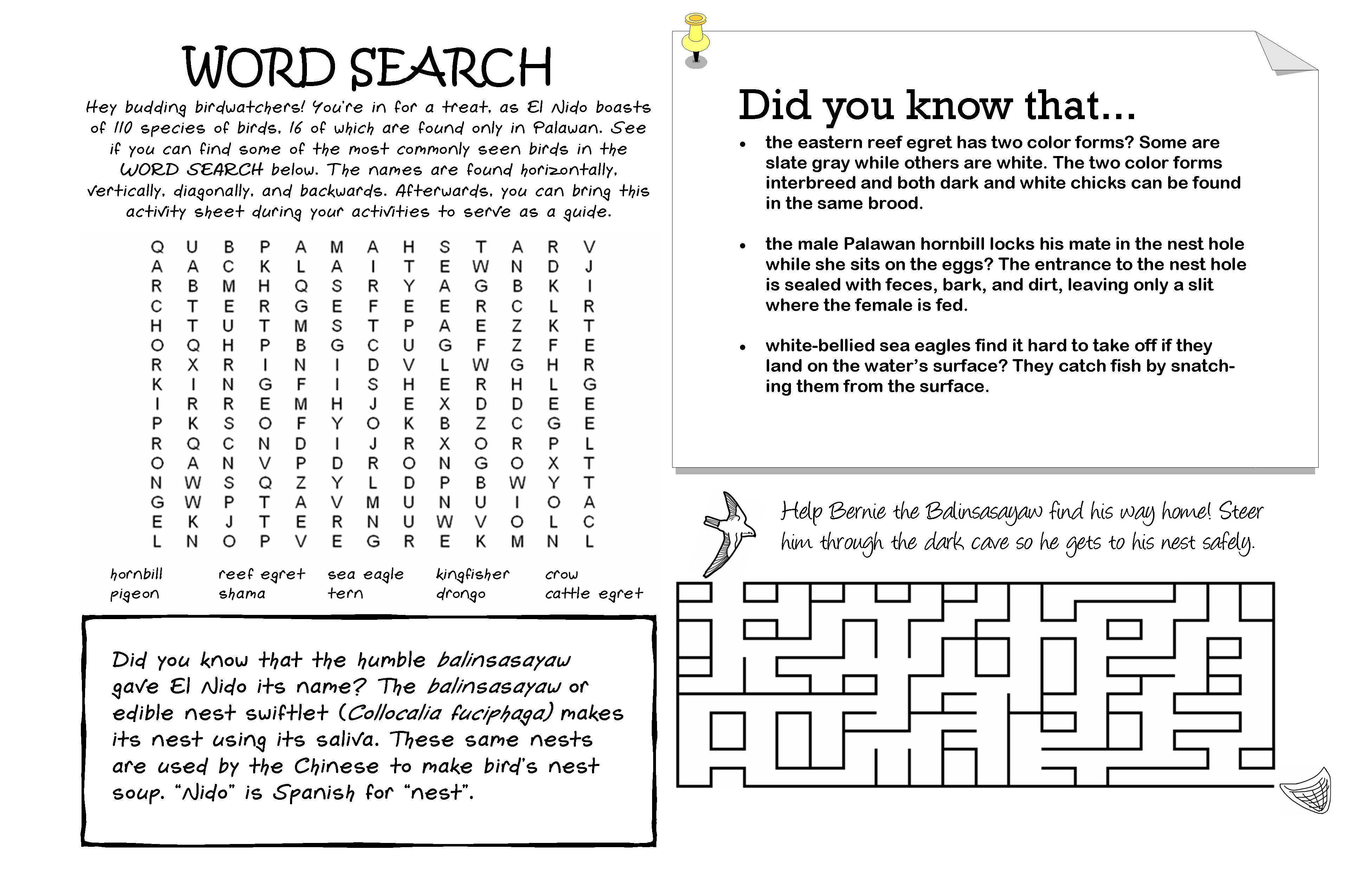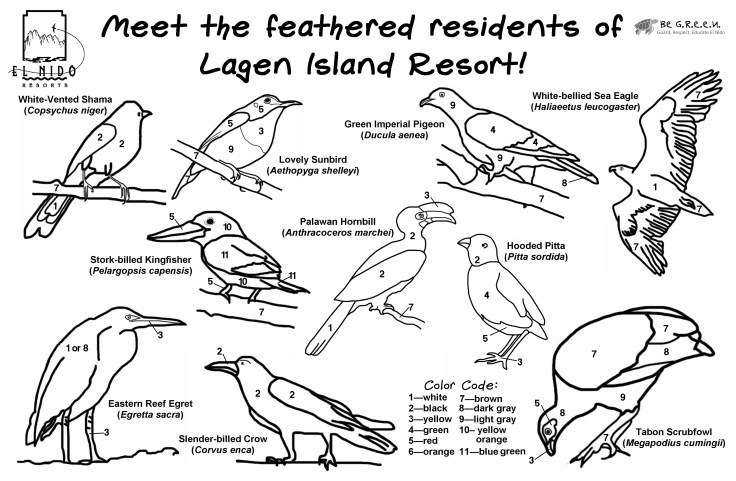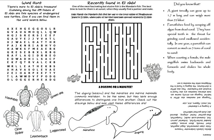 Kids can get into the conservation spirit too! Our coloring and activity sheets feature the birds, fishes, and mollusks that call El Nido home. The kiddies can have fun while learning all about the critters that make El Nido such a special place.